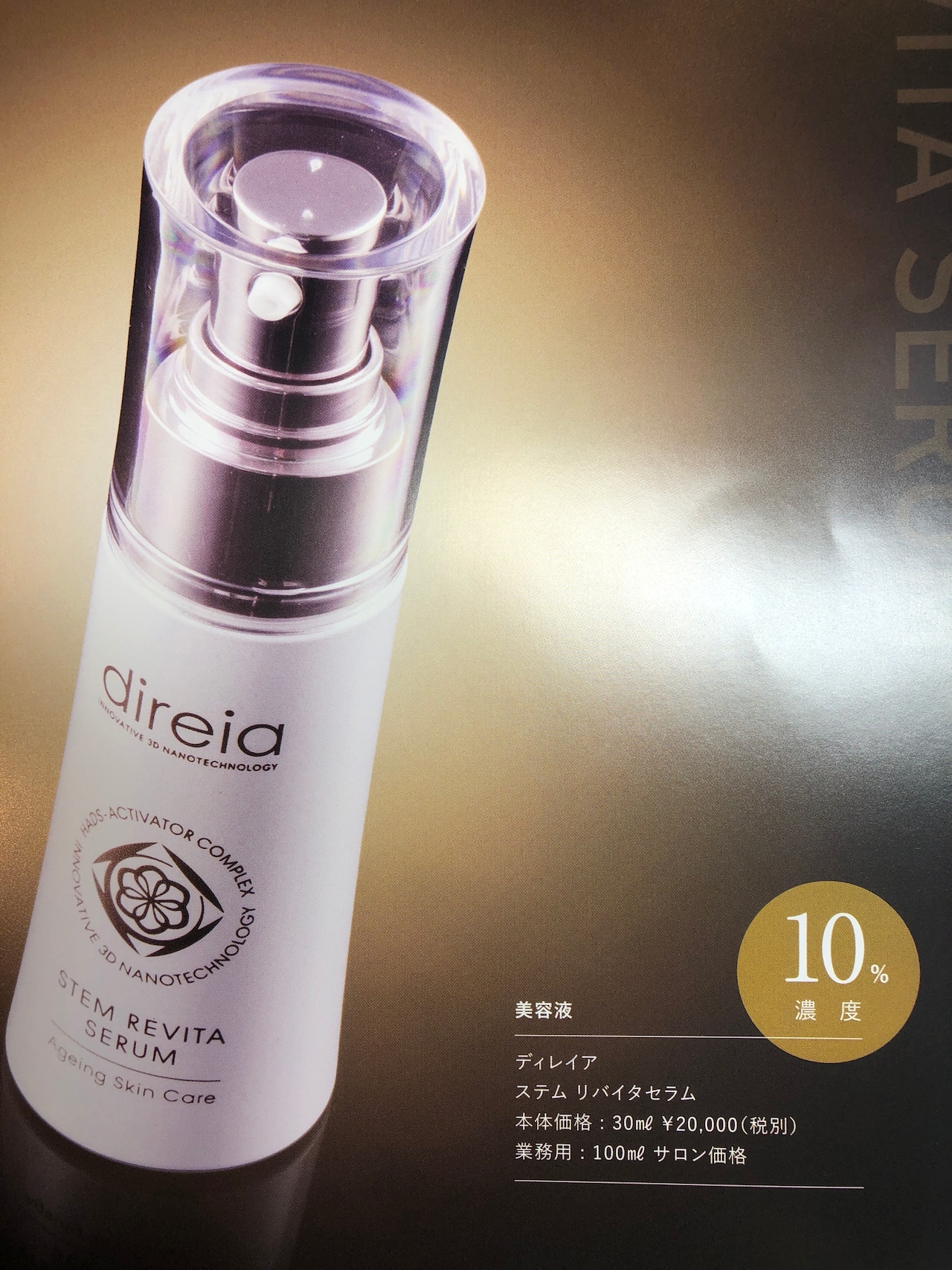 ディレイア ステム リバイタ セラム 30ml ヒト幹細胞培養液 美容液 高濃度10% 肌再生 高浸透コスメ シミ 美白 ハリ・ツヤ 弾力 効果 Direia Stem Revita Serum 日本製